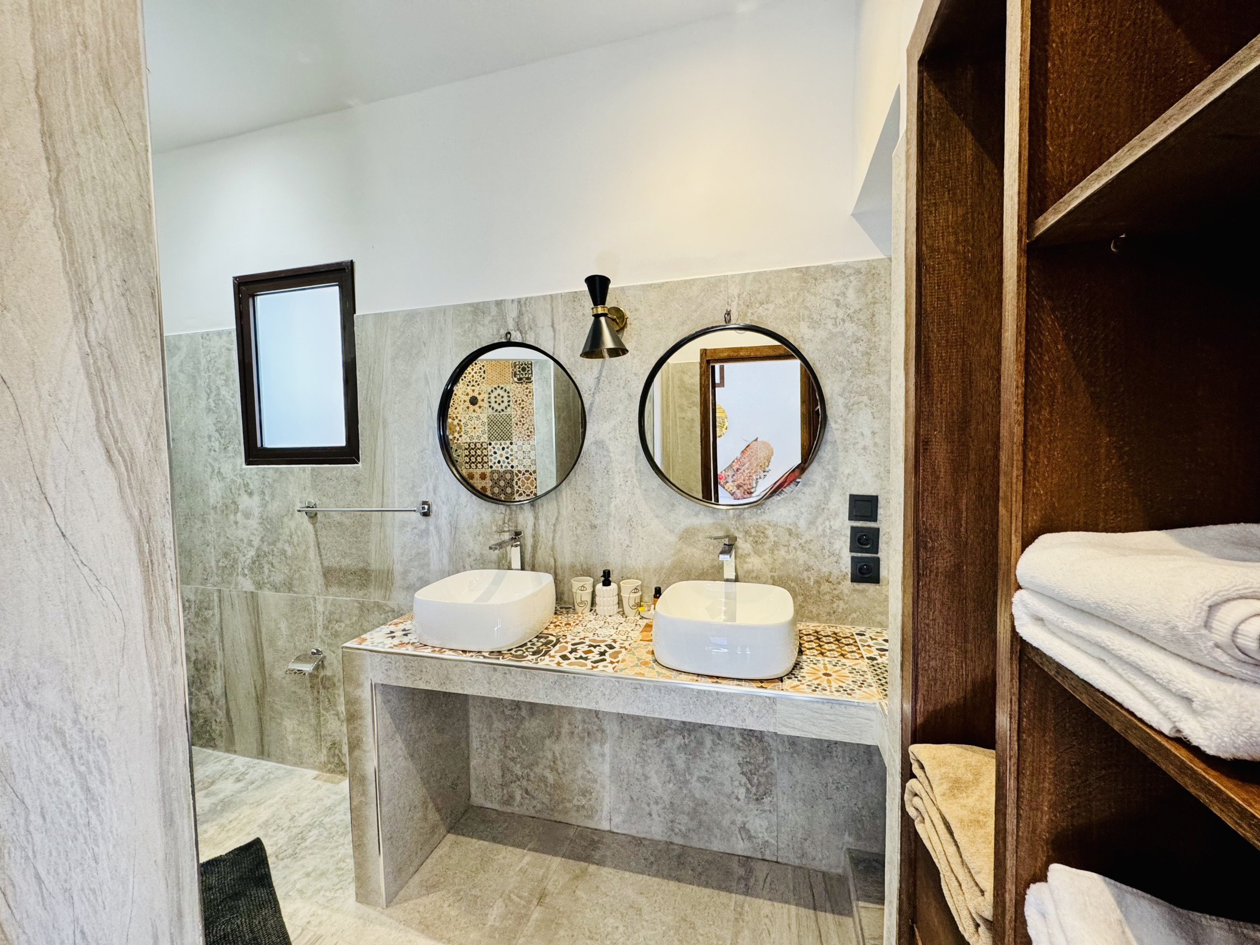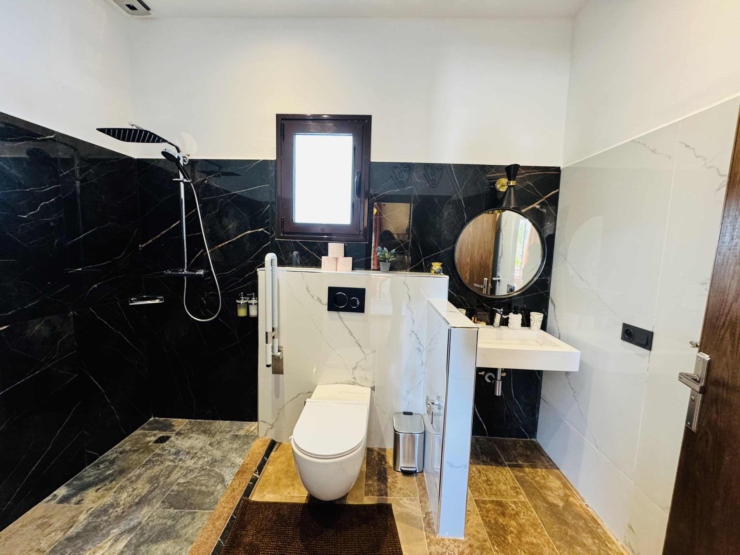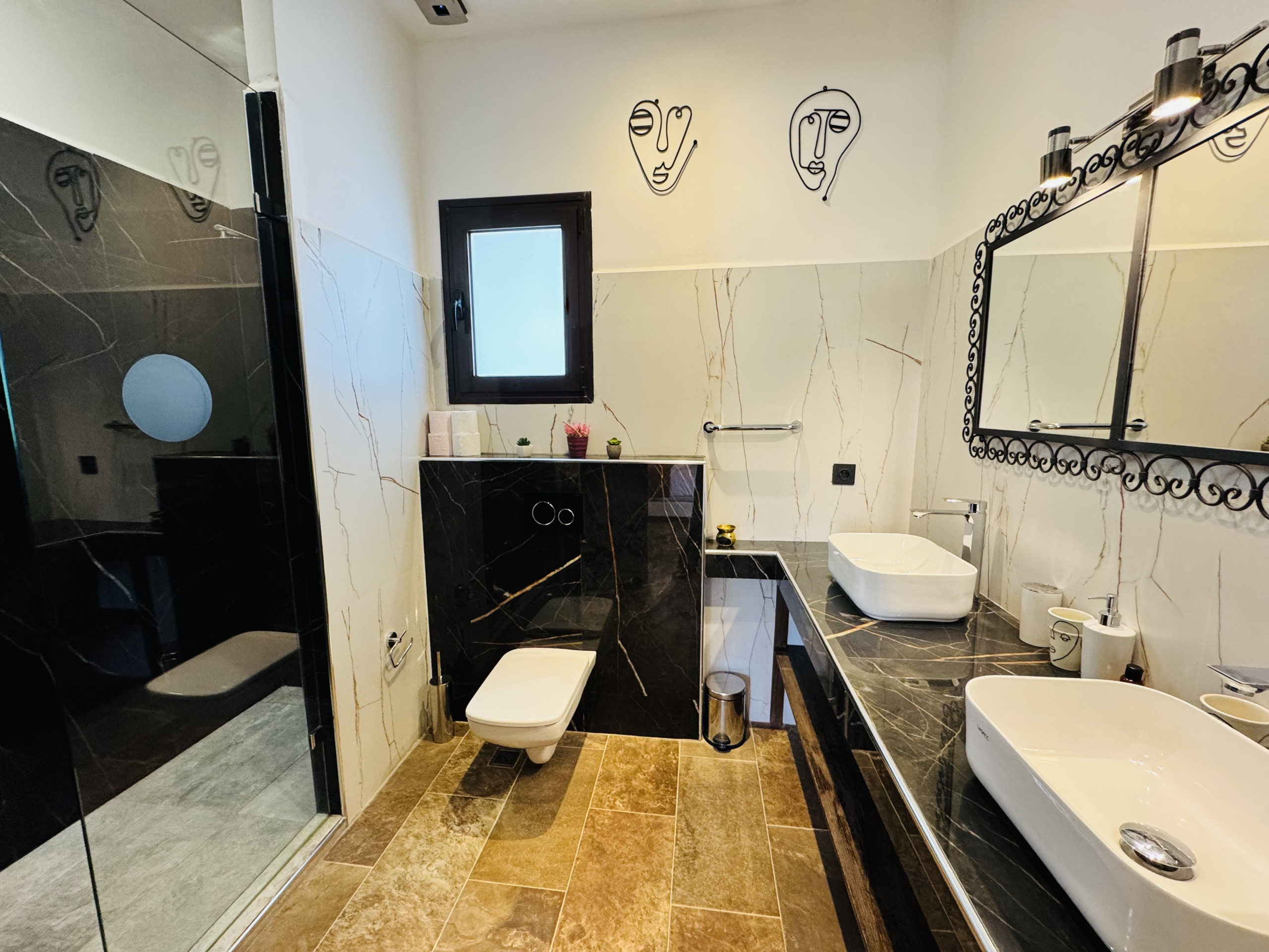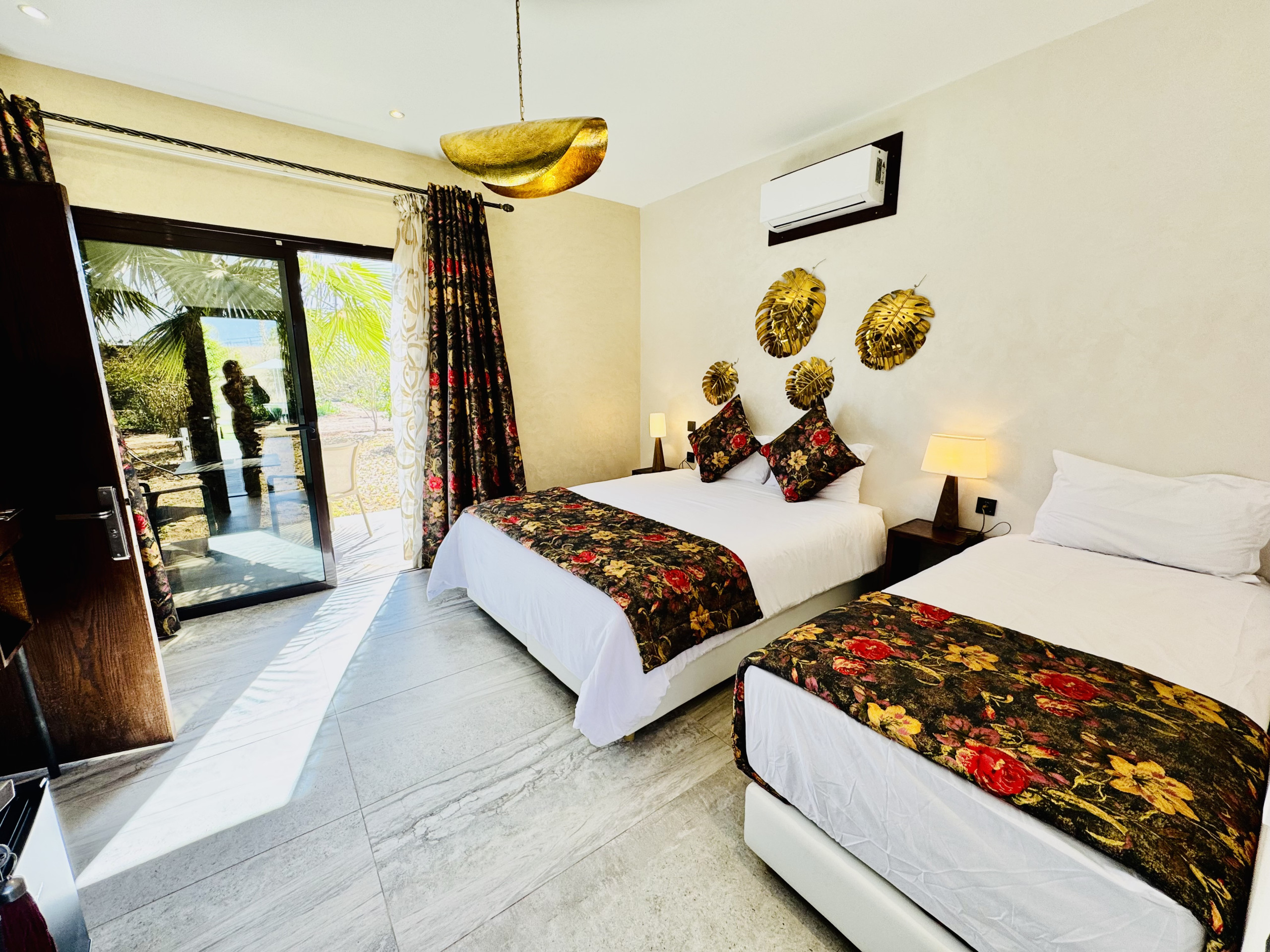 The villa has two private swimming pools - one standard and one heated - perfect for relaxing and enjoying the Moroccan sun. The exterior is equally attractive, with a 9000 m² garden, a terrace, and a fully enclosed plot that guarantees privacy and security.