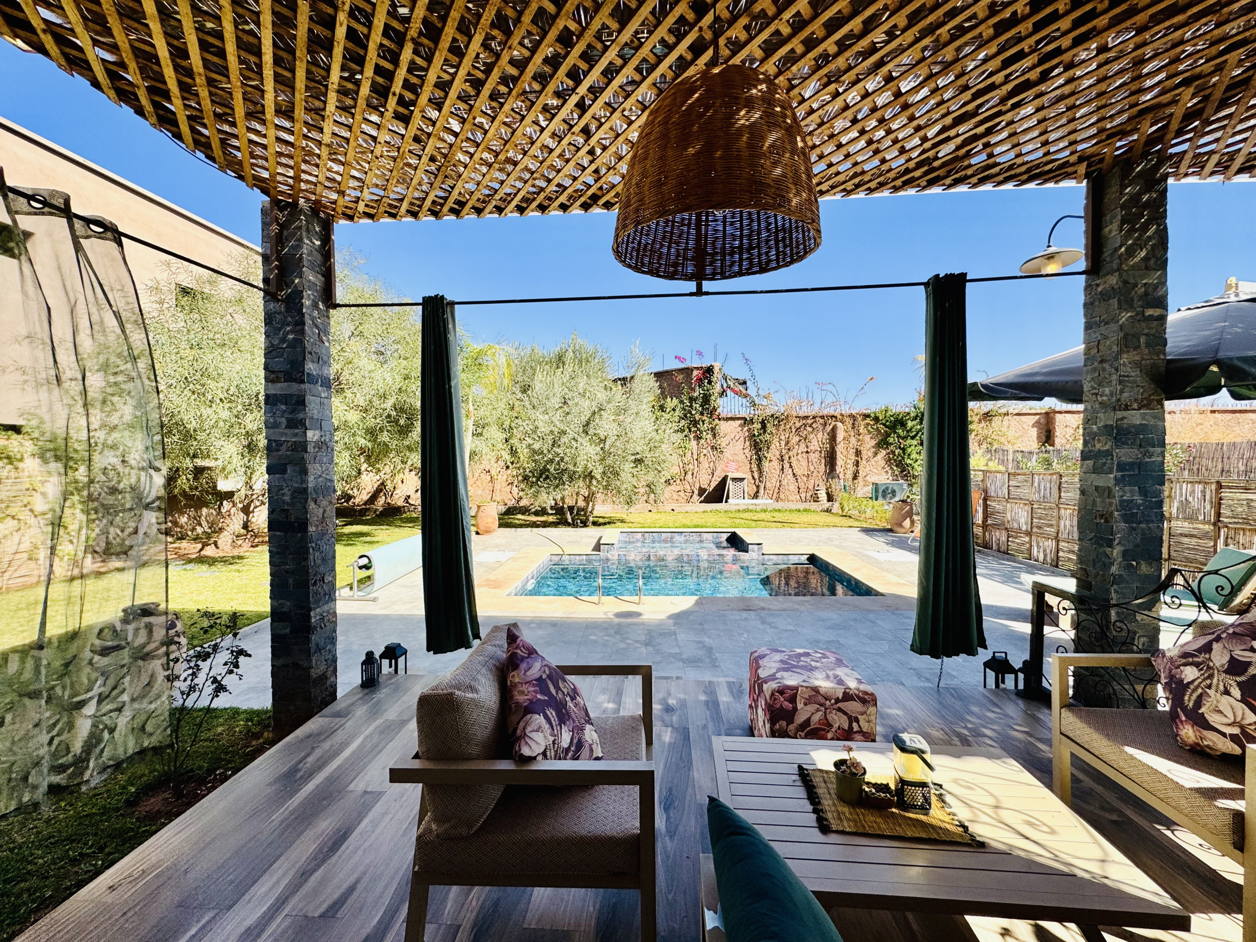 Located in a recent and warm environment, this villa offers an ideal setting for memorable holidays in Marrakech, combining modern comfort and traditional charm.